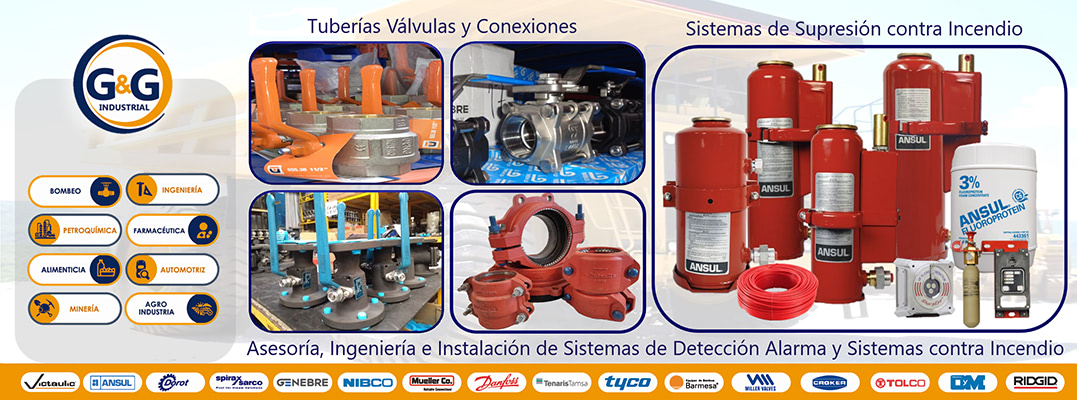 G&G Industrial somos una empresa comercializadora, fundada en el año de 2015 en la Ciudad de Santiago de Querétaro ofreciendo servicios de venta de materiales y equipos de bombeo para el sector industrial a nivel nacional. Nos especializamos en los sistemas de conducción de fluidos, principalmente al suministro de tuberías, válvulas y conexiones para la industria en las especialidades de agua helada, vapor, líneas de procesos, aire comprimido, conducción de ácidos, sistemas de aguas de tratamiento y sistemas contra incendio. Enfocados en sectores de la industria como aeronáutica, alimentaria, automotriz, agroindustrial, química, farmacéutica, petroquímica y minería.